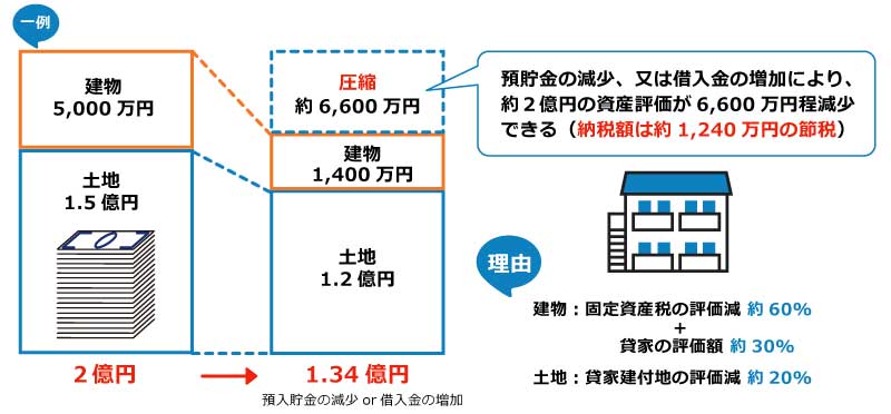 これにより、現金で購入した場合に比べ、相続財産の評価額を全体で5〜6割程度にまで圧縮できる可能性があります。