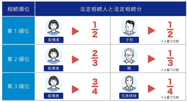 ただし、これらの方全員が遺産を相続できるわけではなく、優先順位(相続順位)が決められています。