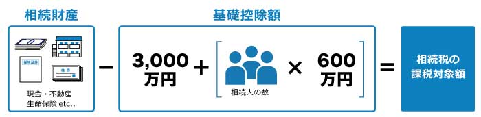 基礎控除額 = 3,000万円 + (600万円 × 法定相続人の数)